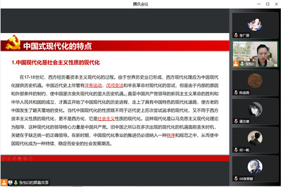 课上,张怡老师以《理想照耀中国——以中国式现代化全面推进中华民族伟大复兴》为题,围绕“现代化的来源”“中国式现代化的本质要求和中国特色”“中国现代化历程的启示”等三个方面展开进行了宣讲。首先,张老师带领同学们一起回顾了我国近代以来现代化发展的曲折历程与经验启示,通过对比揭示了中国式现代化与西方现代化的根本差别。随后,又围绕党的二十大报告的主要观点,详细讲述了中国式现代化发展的本质要求与主要特征。最后,张老师以毛主席的经典论述“与天奋斗,其乐无穷;与地奋斗,其乐无穷;与人奋斗,其乐无穷”来激励同学们充分认识自己肩上担负着的历史使命,要有克服困难的勇气,更要有坚定的理想信念和革命的乐观主义精神,把个人理想融入到民族复兴的伟大梦想中,做堪当民族复兴重任的时代新人。