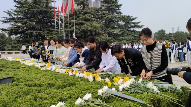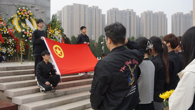 进入烈士陵园后,全体同学整齐列队在烈士纪念碑前肃立默哀三分钟,表达对革命先烈的崇高敬意和深切悼念之情。默哀仪式结束后,同学们在领誓人的带领下举起右手面对团旗重温入党、入团誓词,紧紧握住的拳头、铿锵有力的誓言,表达了青年学子永远跟党走、奋进新征程的坚定信念。伴随着沉重的步伐,同学们逐一向烈士纪念碑敬献鲜花,向英勇顽强、不怕牺牲、无私奉献、忠诚为民的伟大革命先烈致以崇高的敬意。祭扫仪式后,同学们来到中原英烈纪念馆参观学习。纪念馆中丰富详实的图片和文字资料,向同学们展示了中原英烈们为民族独立、人民解放和国家富强、人民幸福作出巨大贡献和牺牲的感人事迹。