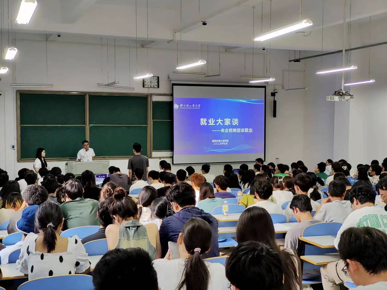 9月17日,星空体育官方网站 在工程楼108举办了第十四期【就业大家谈】——“央企招聘团谈就业”,邀请了中铁七局集团有限公司10家子公司招聘团为大家开展专题讲座。星空体育官方网站 党委副书记彭东来、毕业班辅导员张怡老师以及2024届毕业生、部分非毕业年级学生参加了此次活动。