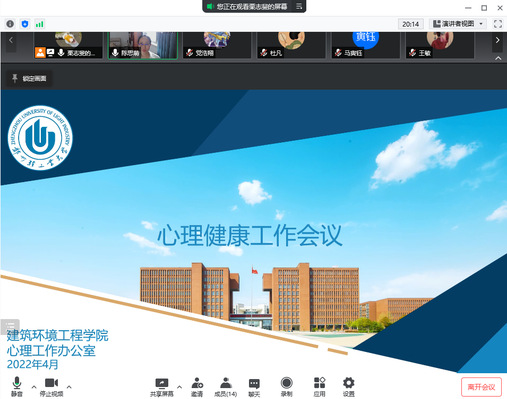 为更好的推进学院心理健康工作的开展,提升工作质量水平,星空体育官方网站 心理工作办公室于近期在线上召开了期中心理健康工作会议,学院党委副书记彭东来、心理专职辅导员陈思萌以及心理工作办公室全体成员参与了此次会议。