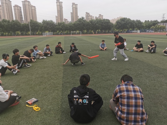 活动伊始,同学们围成一圈,依次说出下一位同学的优点,在此过程中,大家认识到了同学眼中闪光的自己,增强了同学间的亲密度。随后,进入第一个游戏环节“五人四足”,以寝室为单位,每个寝室派出五个人进行比赛,用时最短获胜,同学们在游戏的同时也深切感知团队协作的重要性。最终,男生寝室201用时最短,取得比赛胜利。在 “蒙眼敲击”环节中,双方戴上眼罩,手持蓝色红色充气棒,依据声音用充气棒敲击,其中击中三次任意身体部位为胜,活动进行的如火如荼。同学们释放了心中的压力,欢声笑语充盈着操场。