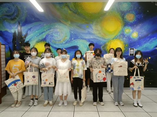 本次活动分为两大部分,户外素质拓展环节和室内手工创作环节。首先是户外素质拓展环节,同学们在主持人的带领下分别体验了“音乐鼓圈”和“桃花朵朵开”。在“音乐鼓圈”当中,同学们跟随着主持人的口令伴随着音乐,敲打着《我们都是追梦人》等一首首优美的歌曲,体验奥尔夫音乐教育的意义和有趣,在音乐中释放自己的心理压力。而在“桃花朵朵开”环节当中,伴随着主持人的口令,爽朗的笑声萦绕着活动现场。在接下来的手工创作环节当中,“信件盲盒”的体验让同学们感到十分新鲜,当收到来自于陌生人的祝福时,同学们无不感受到开心。接着是“手工帆布包”环节,一个个的空白帆布包,在同学们富有想象力的创造中,变为一件件妙趣横生、富有创造力的艺术品。