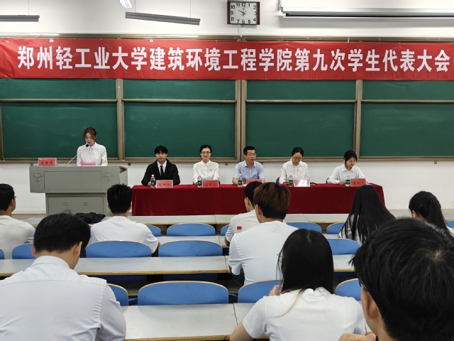 5月18日,郑州轻工业大学星空体育官方网站 第九次学生代表大会在科学校区工程楼108室隆重召开。学院党委副书记彭东来、学工办主任陈思萌、团委书记寇誉元、校学生会团支部书记袁晓梦及全体学生代表参加此次大会。