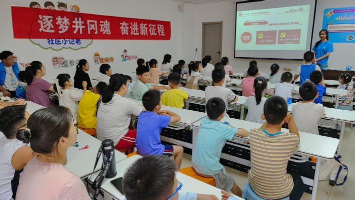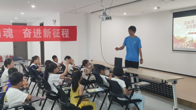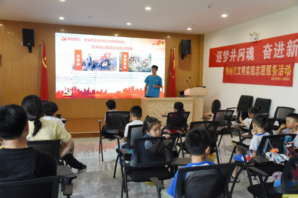 7月6日上午,志愿者们来到秋雅社区党群服务中心,带领社区小朋友一起朗诵毛主席的作品《西江月·井冈山》,观看了视频《走,我们穿越井冈山!》,在句句诗词中感受井冈山将士坚守根据地的英勇斗争精神,在帧帧画面中重温中国革命的摇篮井冈山根据地所承载的红色记忆。随后志愿者们结合自身感悟,深入浅出地讲解了井冈山精神的形成过程与核心理念及“坚定信念、艰苦奋斗,实事求是、敢闯新路,依靠群众、勇于胜利”的井冈山精神内涵。志愿者们激情澎湃的讲解让活动现场响起阵阵掌声,这是对志愿者们最好的肯定。井冈山精神凝聚着奋斗不息的荣光,洋溢着蓬勃的力量。志愿者们纷纷表示要传承弘扬好井冈山精神,激发奋进力量,在新时代新征程上脚踏实地,砥砺前行。
