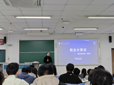 10月11日,星空体育官方网站 在一教楼207开展第二十一期【就业大家谈】——“知名企业主管”谈就业,邀请武汉华康世纪洁净科技股份有限公司人事主管徐宜芸女士来星空体育 进行职业生涯规划指导及招聘宣讲,学院党委副书记彭东来、就业专职老师王建新以及部分毕业生、低年级学生参加了此次活动。
