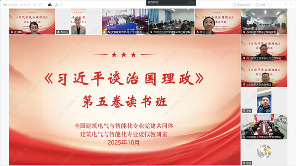 为深入学习贯彻习近平新时代中国特色社会主义思想,推动师生党员在深学细悟笃行、深化内化转化上下功夫,切实把学习成果转化为推动事业发展的实际成效,10月20日下午,全国建筑电气与智能化专业党建共同体举办《习近平谈治国理政》第五卷专题读书班。星空体育官方网站 党委理论学习中心组成员、党支部书记、科级干部在工程楼507室参加读书班。