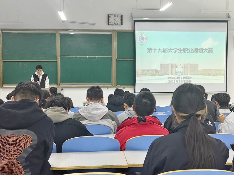 比赛分为“个人展示”与“现场答辩”两个环节。选手们结合专业特色与个人兴趣,围绕“绿色建筑工程师”“智慧城市规划师”“环境治理项目经理”等目标岗位,通过PPT演示、情景模拟、视频展示等形式,系统呈现了自我认知、职业探索、行动计划与动态调整的完整规划路径。本科二年级贺玉玲同学以“智筑精工,匠造未来”为题,展现出对建筑行业智能化发展的敏锐洞察与匠心情怀;本科一年级梁新捷同学聚焦绿色建筑,以“建筑疗愈师”为目标,提出实践思路;研究生娄孟起以发展安全工程与计算机复合型人才为主题,通过清晰的职业规划、扎实的行动方案,以及出色的现场演讲能力,在赛道中展现出专业素养与就业能力。评委紧扣核心问题提问,提供优化建议,为选手们提供了宝贵的指导。经过激烈的角逐,本科三年级贾洪雯同学和研究生娄孟起同学分别荣获本次大赛一等奖。
