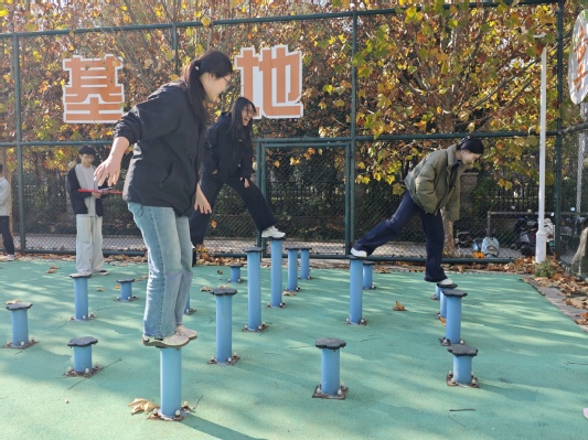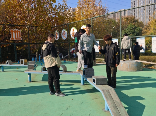活动筹备阶段,各班心理委员牵头组织同学们提前探访拓展基地,熟悉活动场地与规则,为活动顺利开展做好充分铺垫。本次拓展活动精心设置了四项兼具趣味性与挑战性的团队项目:“盲途互助”要求队员在队友的精准指引下,蒙眼穿越高低错落、路径曲折的障碍板,考验彼此的信任与沟通;“温情对行”需两人相向站立于横板之上,在保持平衡的同时相互礼让、默契配合,共同抵达目的地;“同心梅花桩”要求队员依次通行梅花桩,全程不可停留或落地,一人失误则全队重来,凸显团队共进退的协作精神;“携手越晃板”则以两人为一组,在支点错落的晃板上灵活调整身姿、创造性选择落脚点,在脚不着地的前提下携手完成全程。各项活动中,同学们踊跃参与、互帮互助,现场气氛轻松热烈,欢声笑语不断。大家在协作中打破隔阂,在挑战中凝聚力量,不仅锻炼了应变能力与创造性思维,更深刻体会到责任担当与团队温暖的意义。