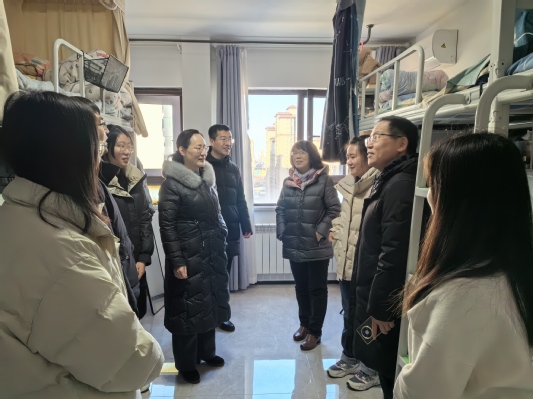 在实地考察方面,学院领导班子走访学院研究生实验室及学生宿舍,深入了解研究生的科研项目和实验进展,对实验室的科研设备、实验条件、安全隐患进行实地考察。同时,检查了宿舍安全卫生、违章电器等情况,加强学生们对火灾等各项安全问题的防范意识,再次强调了假期宿舍安全的重要性。并向寒假留校的学生们送上了诚挚的新年祝福。